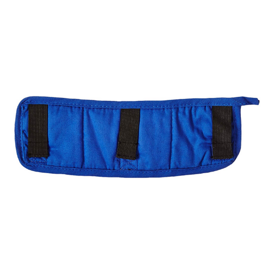 Se adhiere al arnés del casco con un fácil cierre elástico / gancho y bucle. Talla única para todos. El forro es 100% algodón y viene en azul real. Para uso en ambientes con calor excesivo.