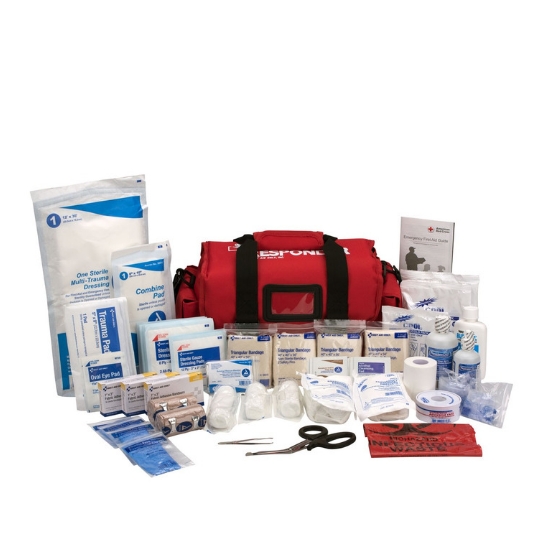 Nuestro completo kit de primeros auxilios contiene los suministros esenciales de primeros auxilios que necesita en una emergencia médica. Esta bolsa semirrígida Cordura de 100 deniers cuenta con asa, bandolera y bolsillos laterales. El compartimento principal tiene divisor extraíble y bolsillo. La tapa tiene funda con cremallera, cierre de hebilla y porta tarjetas. El kit incluye dispositivos de RCP, vendajes, vendajes, cintas, bolsas de riesgo biológico, guantes y más. Además, todavía hay espacio para sus propios suministros médicos personales.