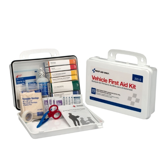 El kit de vehículo de 85 piezas está diseñado para flotas y vehículos comerciales. Su caja de polipropileno con junta contiene productos de marca de calidad que son fácilmente accesibles en caso de emergencia. Este kit cumple con las recomendaciones federales de OSHA y ofrece una recarga fácil con la ayuda de un esquema de reordenación a todo color. Los rellenos están codificados por colores para facilitar su identificación.
