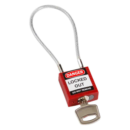 - El cable flexible permite un bloqueo efectivo en espacios reducidos, como gabinetes de interruptores o el bloqueo simultáneo de varios puntos de aislamiento de energía.