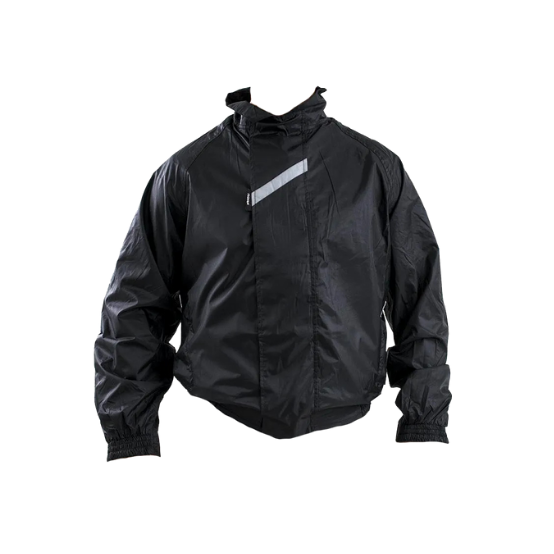 • Capucha de nylon ahulado incorporada con cordel para ajuste