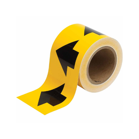 Proporcione visibilidad de 360 ??° a sus marcadores de tuberías interiores y exteriores con esta cinta de flecha de flujo direccional de vinilo sensible a la presión para interiores y exteriores (B-946).