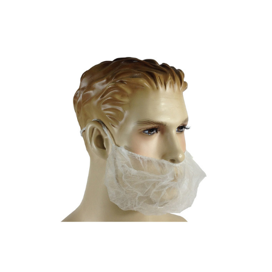 Cubre barba desechable de color blanco.