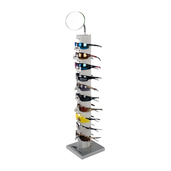 Muestre las gafas de seguridad en su tienda fácilmente con este mostrador de mostrador con bloqueo. Tiene capacidad para 10 pares de gafas.