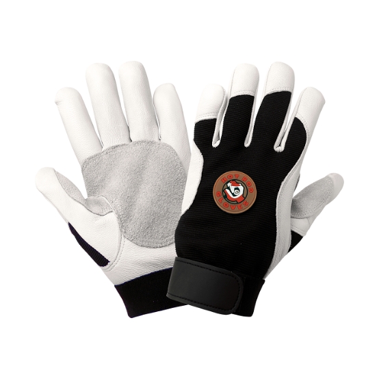 Los guantes de palma de piel de cabra de primera calidad están reforzados con acolchado anti vibraciones / vibraciones en la palma y el área de los dedos. El material amortiguador contra vibraciones / vibraciones ayuda a disminuir las vibraciones, la fatiga de las manos y otras lesiones relacionadas. También tienen un área reforzada para la entrepierna del pulgar, parte posterior de spandex negro y un cierre de gancho y bucle para un ajuste seguro