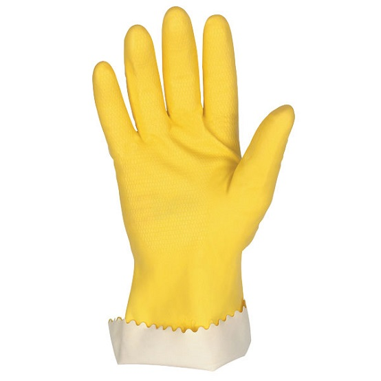 Destreza con forro de flocado! El forro de flocado en nuestros guantes permite una fácil y rápida absorción de la humedad. El 5250 es un guante de látex forrado de flocado amarillo que tiene 15 mil de grosor y 12 «de largo. Estos guantes tienen un puño festoneado.