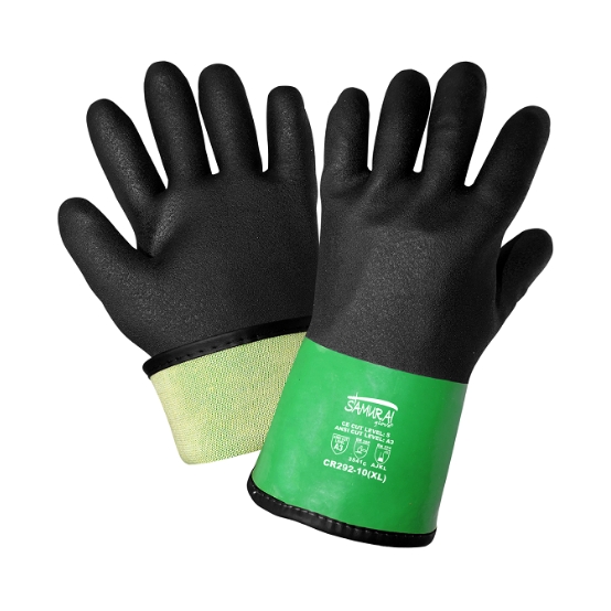 Este guante de PVC / nitrilo de 12 pulgadas de largo cuenta con una cubierta interna de calibre 15 sin costuras de calibre 15. El guante está realzado con una palma bañada en papel de lija.