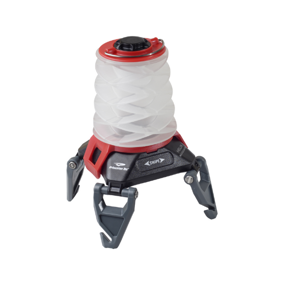 El globo plegable y las patas plegables ayudan a Helix Backcountry a reducir su tamaño cuando es hora de guardarlo. El diseño de la linterna incluso incorpora varias opciones de suspensión a través de la parte superior y las patas. El globo puede ser removido para hacer un haz puntual más enfocado.