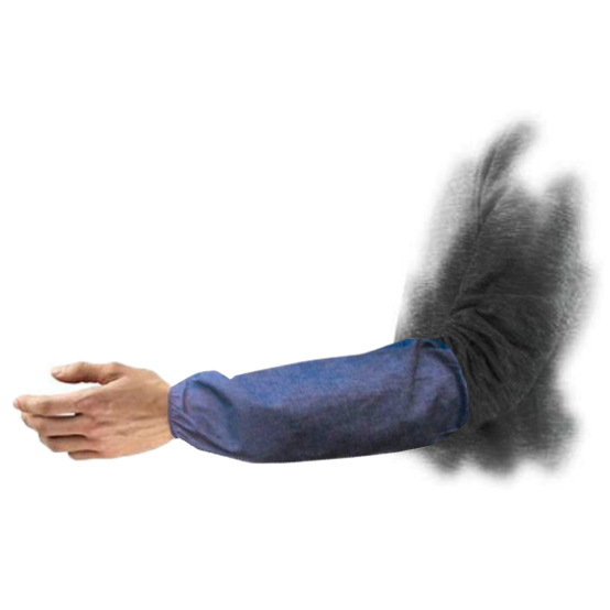 Esta funda de mezclilla tiene extremos elásticos y protege a los trabajadores de la suciedad y el contacto incidental o las salpicaduras.