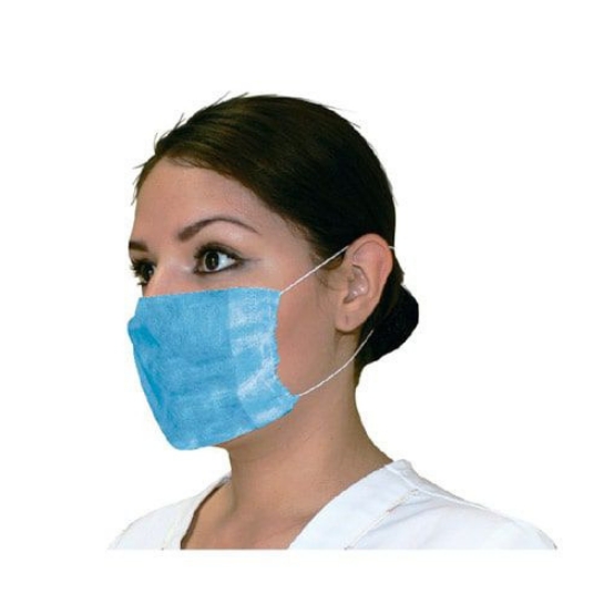 Mascarilla desechable color celeste.