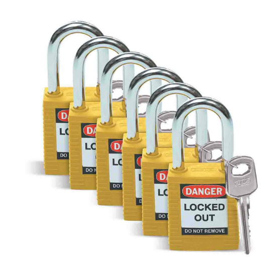 - Los candados tienen cuerpos de nailon reforzados con fibra de vidrio no conductores, ligeros, grilletes de acero endurecido y cilindros de 6 clavijas resistentes a la manipulación