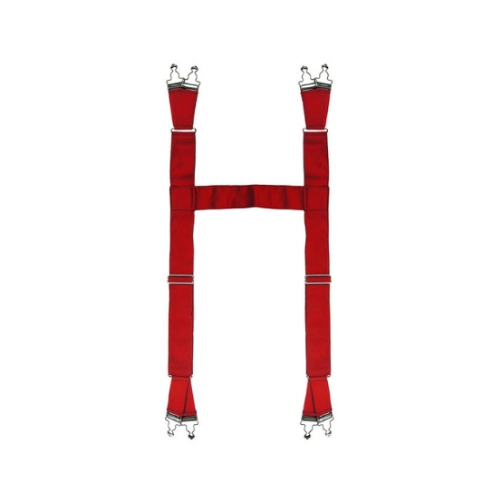 Estilo tradicional «H», con cinta elástica de 2″ en color rojo, con sujeción para 4 botones frontales y 4 traseros con cruce en la parte de la espalda unidos con parche de piel y terminales de piel. Normalmente para usarse en pantalones de cintura estándar baja.
